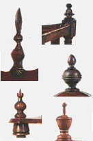 Finial: A knob or spire-like ornamental projection finishing off an upright